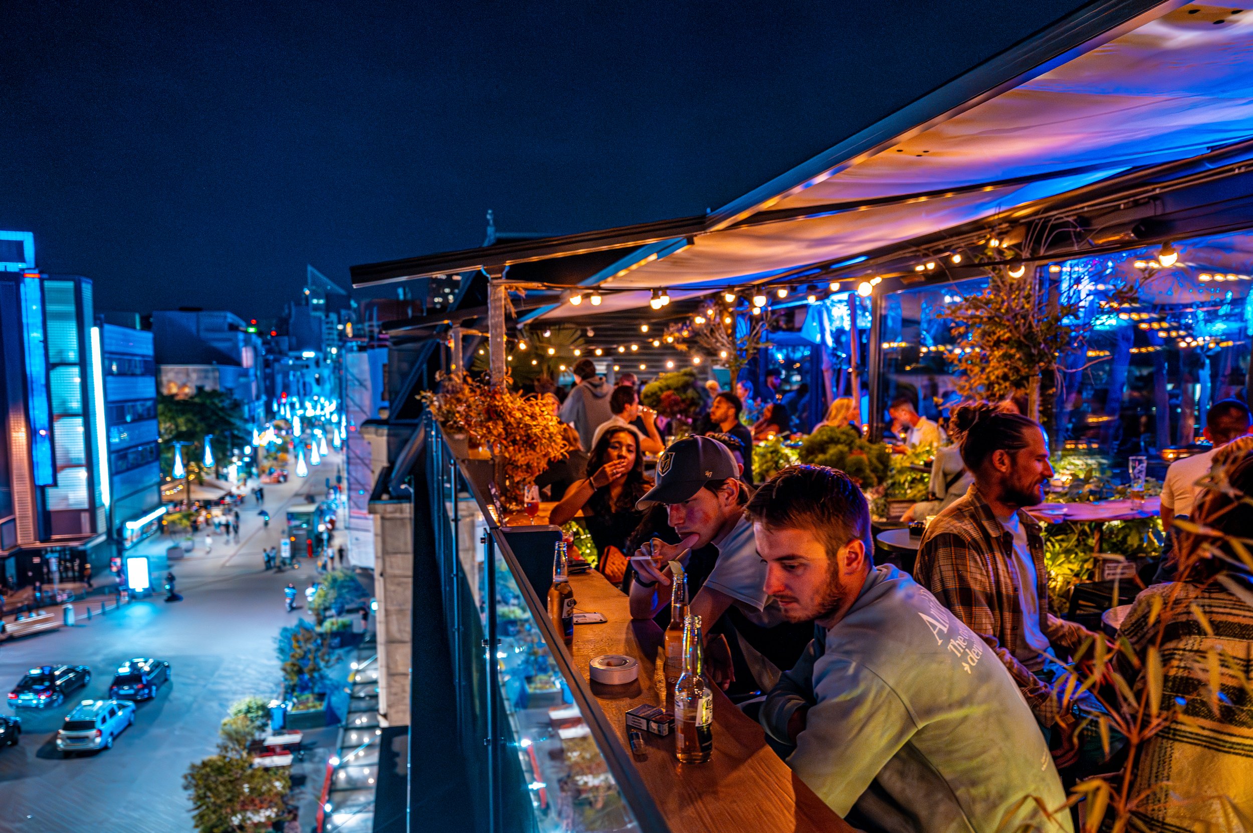 Surplombant le cœur animé de La Haye, sur la Grote Markt, vous trouverez le seul bar rooftop et sky bar du centre-ville de La Haye doté d'une terrasse sur le toit ouverte au public. Le rooftop emblématique du Bleyenberg, situé au 3e étage — avec ses 225 m² de terrasse couverte et d'espace intérieur — offre une vue panoramique à couper le souffle sur le Prinsegracht, la Grote Markt et la ligne d'horizon du centre-ville. L'endroit idéal pour des moments inoubliables : avec un cadre chaleureux, des cocktails maison et un DJ résident les vendredis et samedis à partir de 21h30.
